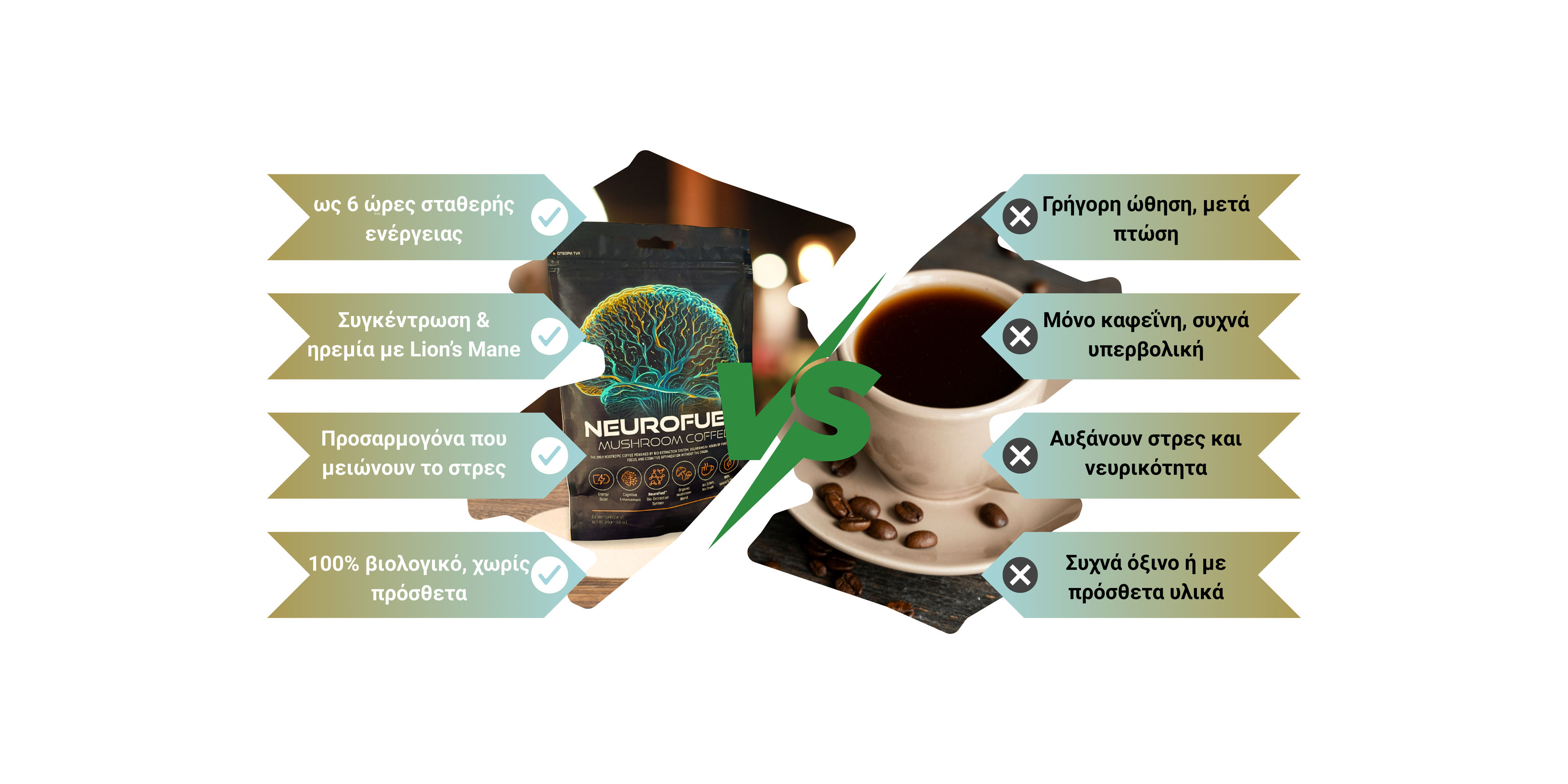 Με την υποστήριξη του Lion’s Mane και του συστήματος βιο-εξαγωγής NeuroFuel, ο καφές μας ενισχύει τη σκέψη, τη συγκέντρωση και τη μνήμη σου, από το πρώτο κιόλας φλιτζάνι.